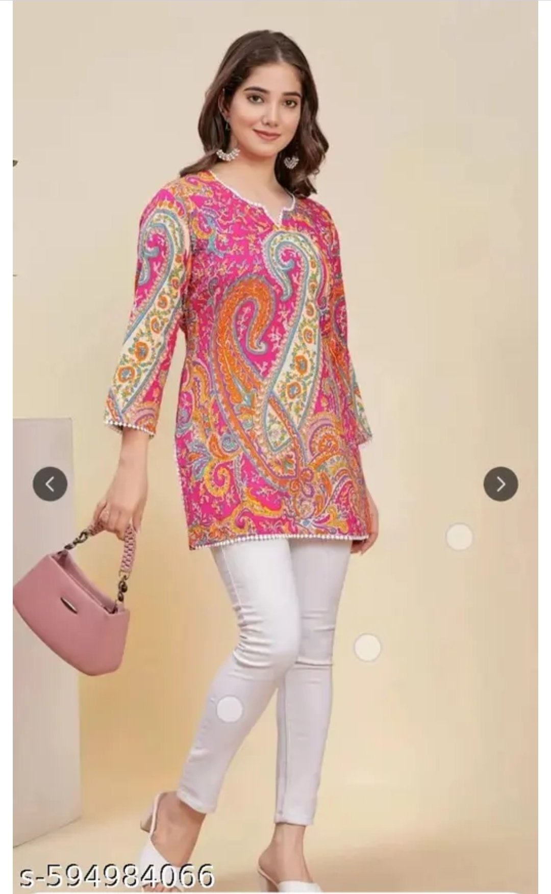 Name: Pink Traditional Motif Printed Cotton Short Kurti, Lace Detailing on Neckline and Sleeves Fabric: Rayon Sleeve Length: Three-Quarter Sleeves Pattern: Printed Combo of: Single Sizes: XS (Bust Size: 34 in, Size Length: 30 in) S (Bust Size: 36 in, Size Length: 30 in) M (Bust Size: 38 in, Size Length: 31 in) L (Bust […]